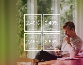 Wählen Sie zwischen kurzfristigen Laufzeiten von 3 bis 12 Monaten oder längeren Laufzeiten von 18 bis 48 Monaten. Eröffnen Sie jetzt Ihr Sparkonto und profitieren Sie von attraktiven Zinsen.